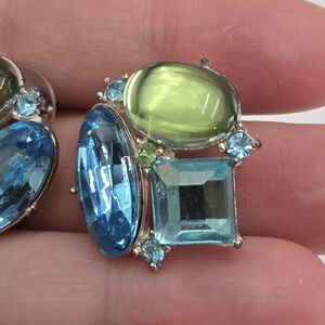 Vintage 1990's AVON Green & Blue Rhinestone Statement Pierced Earrings Large