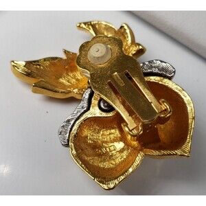 Vintage 1990's AVON Large Gold Silver Tone Acorn Leaves Clip Earrings