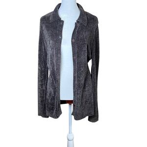 Vintage 1990s Ann Taylor Gray Knit Chenille Button Cardigan Sweater Size Medium