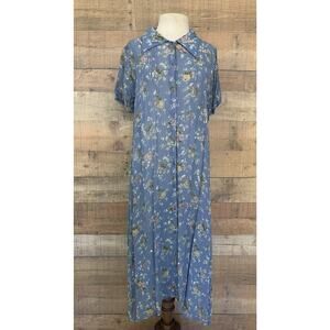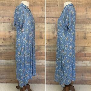 Vintage 1990’s April Cornell for Cornell Trading label, made in India, 100% rayon semi sheer fabric dress, front buttons, babydoll waist, maxi length. Oversized, romantic floral, classic 90’s.