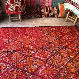 Infuse your home with the vibrant colors and intricate patterns of this vintage Beni Mgild rug from the 1990s. Handwoven by skilled artisans, its rich red hues and geometric designs make it a captivating focal point for any space. FREE DELIVERY WITHIN 5 TO 8 DAYS.