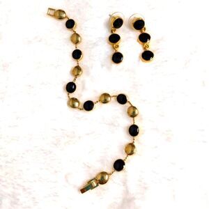 Vintage 1990's Black & Goldtone Bracelet and Pierced Earring Set