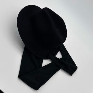 Vintage 1990s Black Wool Hat With Attached Scarf Women’s Medium Retro Winter Cap