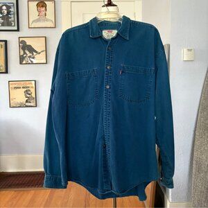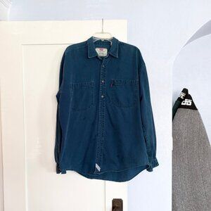 Vintage 1990s Blue Levi's Long Sleeve Button Down Work Shirt size Large Men's
