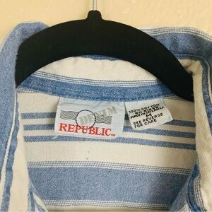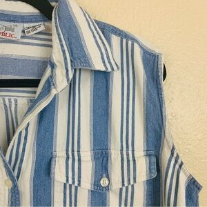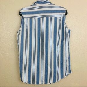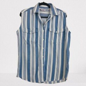 Vintage 1990s Blue White Striped Sleeveless Button Down Shirt Size Medium