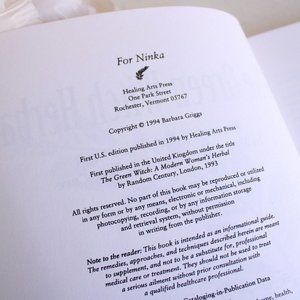 Vintage book from the earliest 1990s. "The Green Witch Herbal" by Barbara Griggs. Lots of magical ideas for using herbs in an enchanted way! Published in 1994 by Healing Arts Press. It measures about 10" x 8" and is 168 pages.