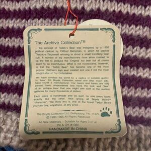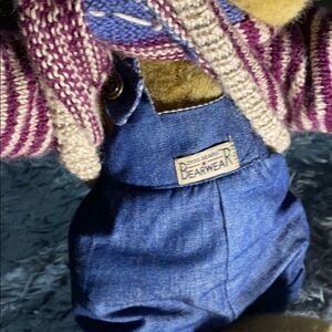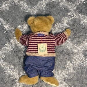 Vintage 1990s Boyds bear NWT dressed with overalls and sweater with star and stripes, swivel legs, arms and head.