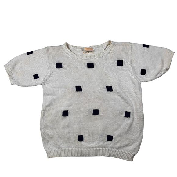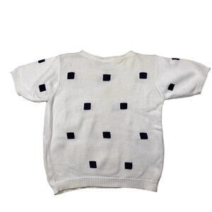 Vintage 1990s Brooks Brothers Knit Sweater Navy Blue Squares Short Sleeve AS IS