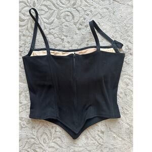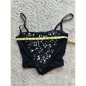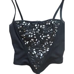 Vintage 1990s Cache by Tadashi Black White Floral Corset Top 6 S/M Lace Overlay