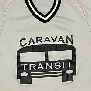 Vintage 1990s Caravan Transit Bus Gray Softball Baseball Sports Jersey