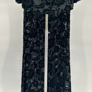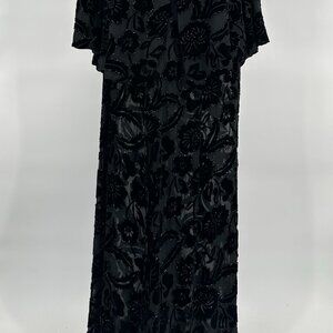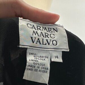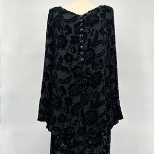 Vintage 1990s Carmen Marc Valvo Black Rayon Silk Velvet Beaded Evening Ensemble
