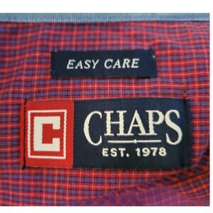 Authentic vintage Chaps men’s button-down shirt from the late 1990s/early 2000s. Classic red, blue, and white plaid with tailored hem, embroidered logo chest pocket, contrast chambray neckline, and back vent for comfort. Features a button-front closure and two-button cuffs, designed to be worn tucked or untucked. Made from a durable cotton-poly blend (60% cotton, 40% polyester). Approx. measurements: pit to pit 23", back length 30". A true vintage preppy staple with lived-in history, perfect for Y2K styling, casual office wear, or retro layering. Gently pre-worn, in excellent vintage condition, no visible flaws.