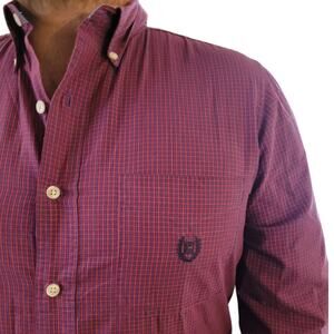 Vintage 1990s Chaps Mens Plaid Button Down Shirt Medium Red Blue Y2K Preppy