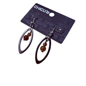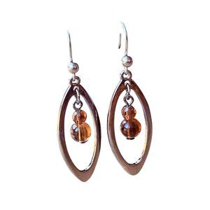 Vintage 1990s Chico’s Silver Oval Amber Bead Dangle Earrings Modern Minimalist