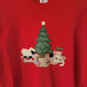 Vintage 1990s Christmas Patchwork Quilted Granny Red Sweatshirt Medium