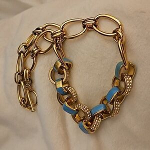 Vintage 1990s Chunky Rhinestone Turquoise Blue Enamel Circle Link Chain Necklace