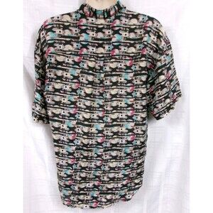 Vintage 1990's City Streets Abstract Shapes 100% Silk Shirt Mens Size Medium