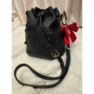 Coach 9953, Coach bucket bag, vintage Coach drawstring, black leather crossbody, NYC-made Coach, 1990s Coach purse, glove-tanned leather, vintage Coach bucket, Coach USA