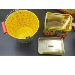 **The tin pieces have some surface scratches and a few dents here and there that would be expected to be seen on vintage items from the 1990's.