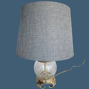 Vintage 1990s Cut Crystal and Brass Boudoir Lamp with Grey Shade