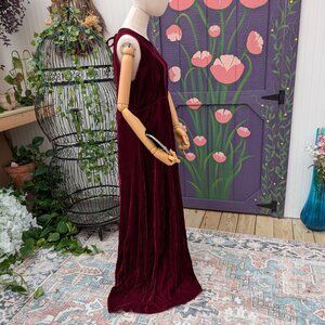 Vintage 1990's Dark Blood Red Velvet Backless Vampy Evening Gown By Jordan