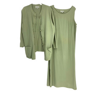 Vintage 1990's David Dart Plus Sz 1X Green Tencel Maxi Tank Dress + Overshirt