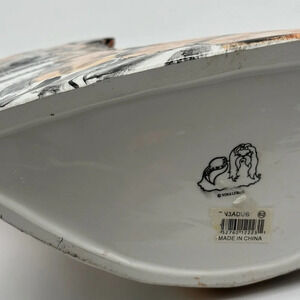 This vintage 1990s ceramic vase planter from Dogs by Nina features a cute corgi design in multi-color. It is a discontinued edition and a great addition to any vintage/antique decor collection. The primary material is ceramic and porcelain, and it is a beautiful decorative item for any home. The brand is Dogs by Nina, and the country/region of origin is mentioned in the title. This original piece has an unknown age and is in excellent condition. It is a perfect item for collectors of unique and beautiful glass/pottery items.