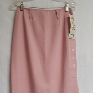 Vintage late 1990s ESPRIT long side button work skirt with huge belt loops NWT 7/8. It is dusty petal pink and is perfect for a professional environment. I bought this for myself in about 1990 but ended up never wearing it and it has been boxed up since then.
