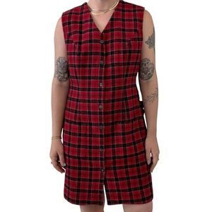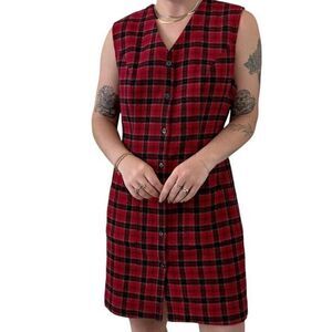 Vintage 1990s Eddie Bauer Red Wool Plaid Tartan Grunge Punk Mini Dress Sz 10