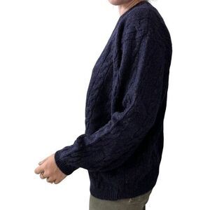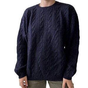 Vintage 1990s Eddie Bauer Mens Purple 100% Shetland Wool Cable Knit Sweater XL