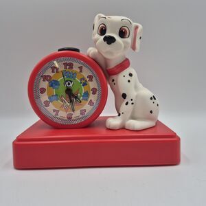 This is a vintage Disney's 101 Dalmatians alarm clock featuring Pongo, the Dalmatian father, from the animated film.