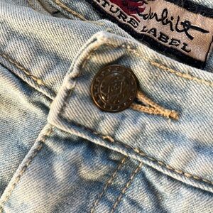 Good Vintage Condition, a few frayed/ worn spots on hem and one small brown stain on back of leg.