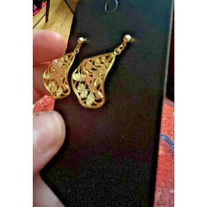 These vintage 1990s earrings are a stunning addition to any jewelry collection. The gold-tone metal provides a classic and elegant look, while the dangle/drop style adds a touch of playfulness. The earrings feature a timeless design that is perfect for both formal occasions and everyday wear. The beautiful gold color will complement any outfit and make a statement. These earrings are a must-have for any jewelry lover and would make a great gift for someone special.