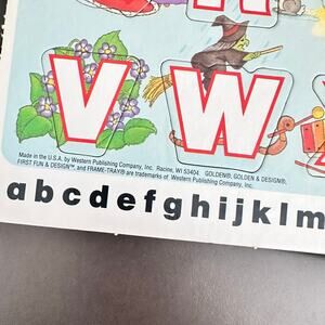 Vintage 1990s Golden Alphabet Tray Puzzle - this cute piece would be adorable displayed in a child's playroom or nursery. In great condition, of course you could play with it as well! See photos for details. Smoke Free Home. Thank You For Checking Out This Listing, Please Check Our Profile To Bundle Or Make Offers.