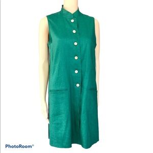Vintage 1990’s Green Tunic Linen Button Down Shirt Dress