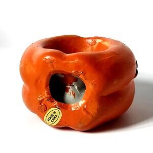 Keywords/Tags: fall décor, Thanksgiving table, harvest, pumpkin napkin ring, porcelain napkin holder, tablescape, cottagecore autumn, orange & green, hand painted, NOS, giftable hostess
