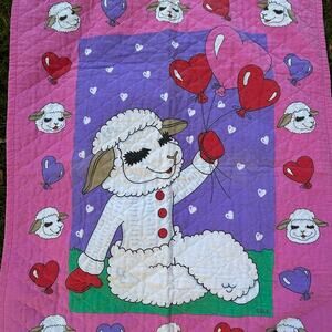 Vintage 1990s Lamb Chop Quilted Toddler Blanket – Reversible Hearts