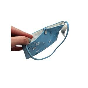 Vintage 1990s Laundry by Shelli Segal Small Purse Bag Blue White Daisy Flower