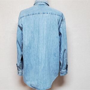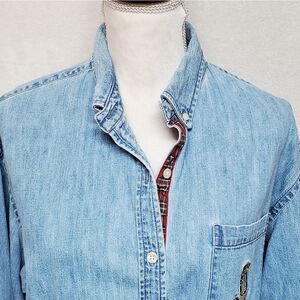 Vintage 1990s Lauren Ralph Lauren Chambray Stone Wash Button Up Logo Top Large