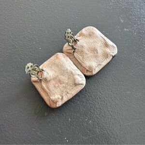 Vintage 1990s Leather Square Clip On Earrings Diamond Shaped Jewels 90s Animal Print