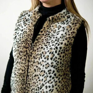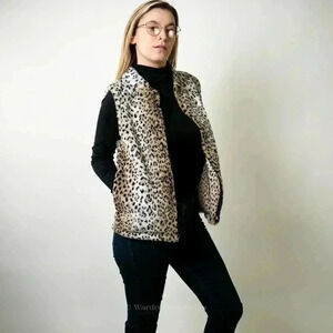 Vintage 1990s Leopard Animal Print Cobblestone Canyon Cheetah Faux Fur Vest - S