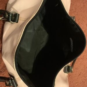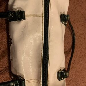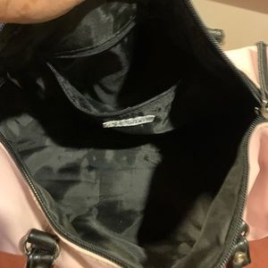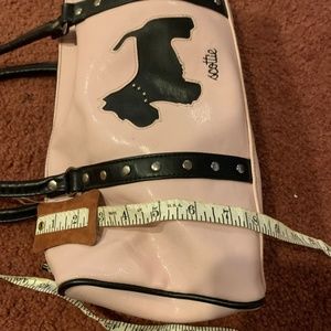 We are in the process of a retirement move and we have tons of vintage items we had in storage. This cute purse belonged to my daughter when she was young. This is from the 1990s time frame. It is in very good vintage condition. It has a few small surface scuffs from being in storage. It is made out of a pleather type vinyl in pink with black trim. It shows very little use or wear on the purse both inside and out. See photos for measurements. This is a medium sized purse, not real small. I remember her using it to carry around her beanies or other items in, There was enough room in the purse for her to take some of her favorite things along with her. Funny, the plastic piece of the hang tag is still attached although I know she carried this with her sometimes. We must have removed the price tag and left that plastic piece still attached.