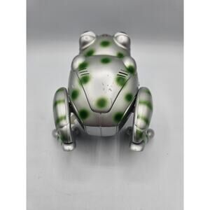 Vintage 1990s Manley Toy Quest Animated Plastic Frog Silver Green Sensor