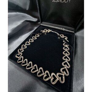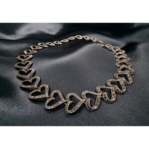 Vintage 1990s Marcasite Sterling Silver 925 Heart Link Necklace