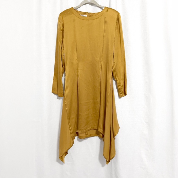 Vintage 1990s Mary Jo Bruno Deadstock Mustard Yellow Silk Dress Size 4