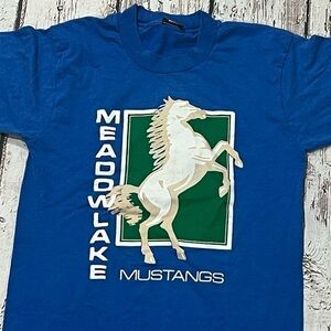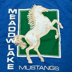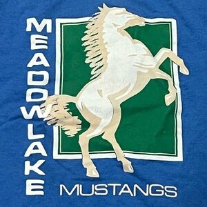 Vintage 1990s Meadowlake Mustangs 90s Graphic Crewneck Tee Top Shirt