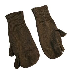 Vintage 1990s Mens Sz XL Wool Mittens w/ 3 Finger Holes Brown Hunting
