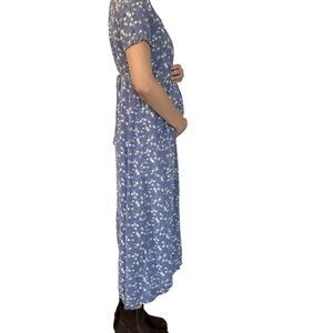 Vintage 1990s Midi Dress Maternity Pregnancy Floral Casual Tie Waist Size Small