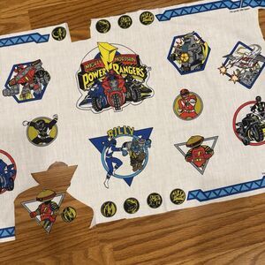 Vintage 1990s Mighty Morphin Power Rangers Fabric Panel Cotton Craft Appliques