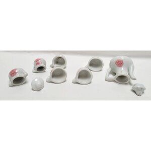 Vintage 1990s Miniature Dollhouse Porcelain 14 Piece Tea Set Pink Floral Design